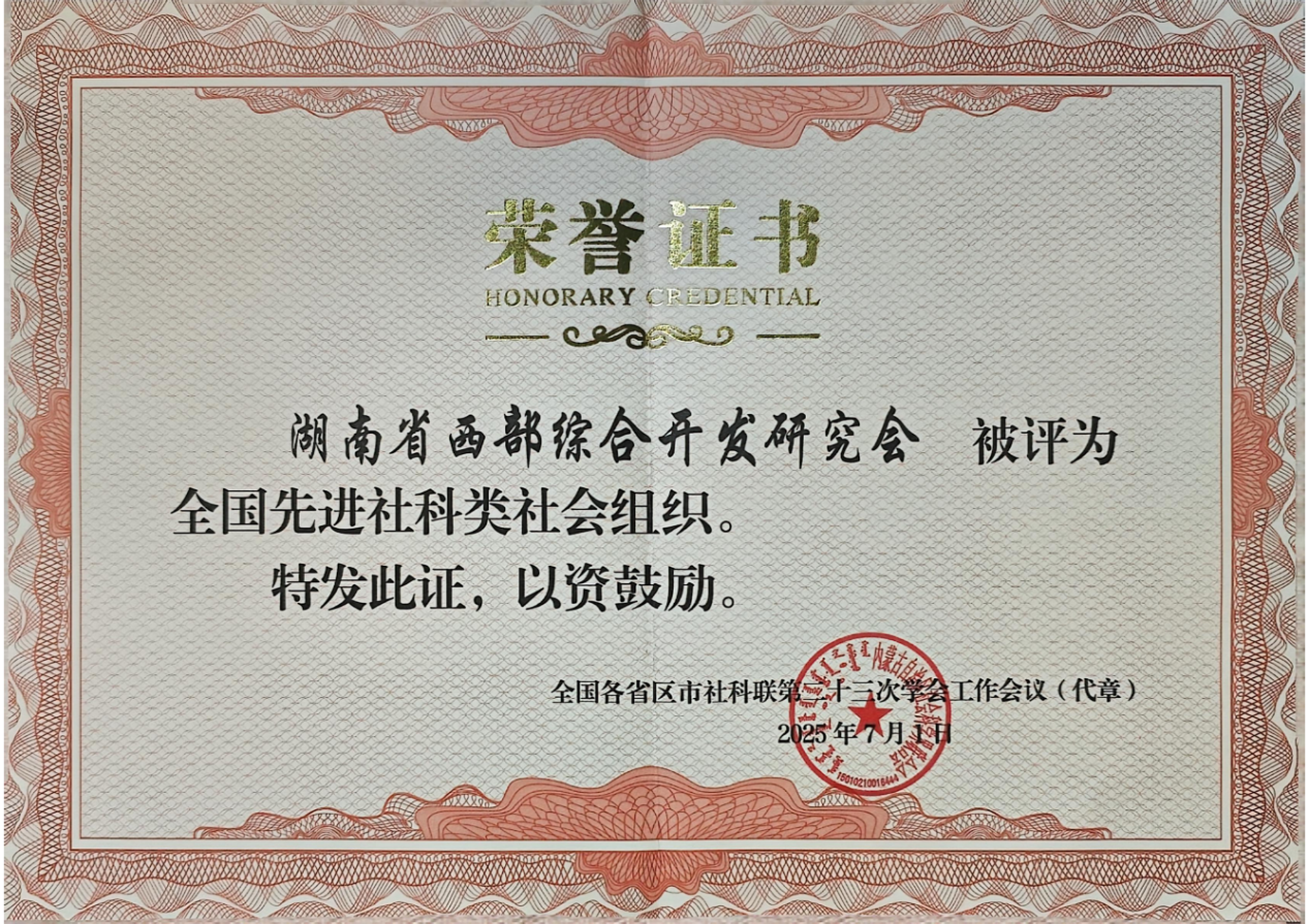 湖南省西部综合开发研究会获评“全国先进社科类社会组织”